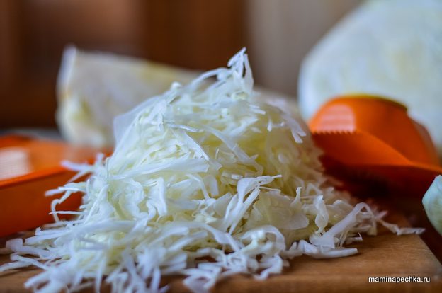 Нашинкуйте капусту.