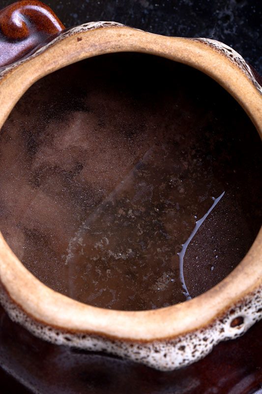 Пусть у нас мясо в бульоне хорошо прокипит и сварится. Я горшочки не закрывал на этой стадии, а наверно, надо было.