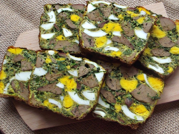 Отличная быстрая закуска из куриной печени, зелени и яиц.