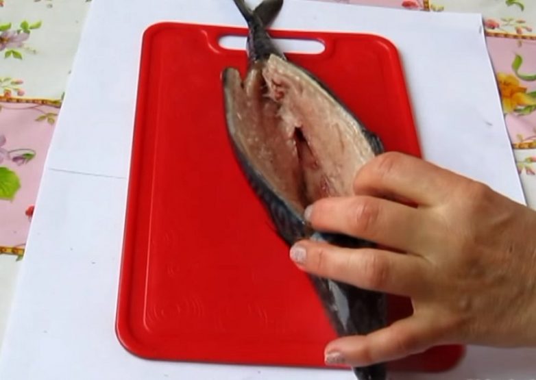 Разморозь и помой рыбу. От головы до хвоста вдоль одной стороны спинного плавника острым ножом сделай надрез.