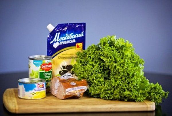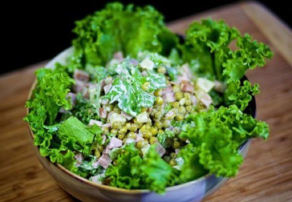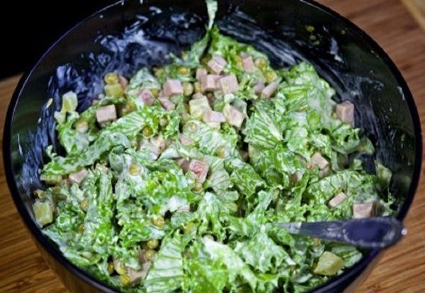 Перед подачей на стол салат с ветчиной держим полчаса в холодильнике.