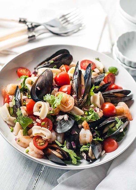 Среди салатов, которые можно быстро и легко приготовить на праздничный стол, особое внимание стоит уделить вариантам с морепродуктами. Многие хозяйки опасаются самостоятельно готовить мидии или кальмары, предпочитая приобретать сразу замаринованные морские коктейли. Конечно, такие варианты готовых смесей из морепродуктов также можно использовать для салатов. Но намного полезнее приготовить каждый ингредиент своими руками, тем более что процесс варки морских деликатесов не занимает много времени.