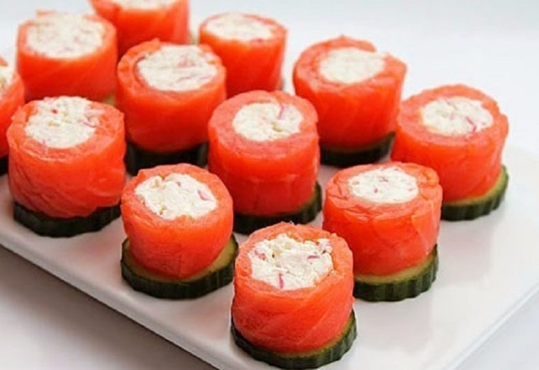 Для рулетиков можно использовать ветчину, лаваш, блины, листья салата, красную рыбу, сыр и множество других продуктов. Взгляните на эту подборку, вам наверняка что-то понравится.