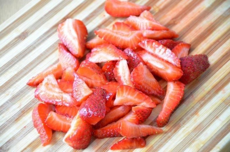 Очисти и мелко нарежь клубнику на небольшие дольки. Мелко нарежь мяту.