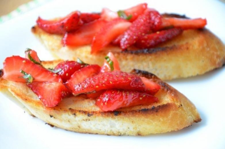 Гренки с клубникой и мятой