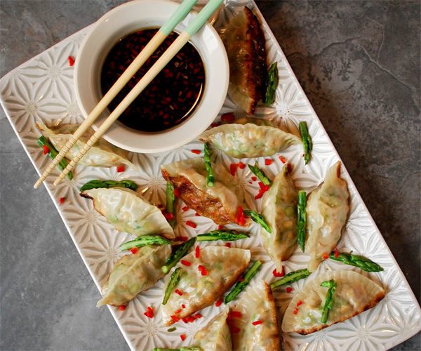 Тут придется повозиться с раскаткой теста: японцы привыкли делать его очень тонким. Внутрь заворачивают свиной фарш или морепродукты, пекинскую капусту и ниру.