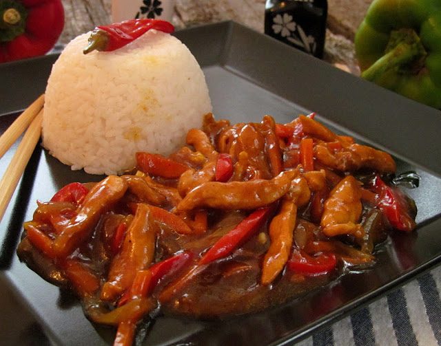 Подавать с гарниром из отварного риса.