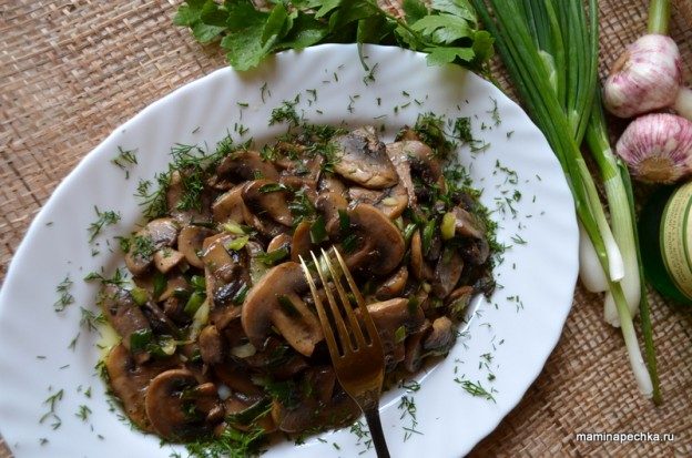 Вот так, буквально за 20 минут, Вы приготовили вкуснейшее блюдо — очень сочное и ароматное. Рассыпчатый отварной картофель, пожалуй, будет лучшим гарниром к этим грибочкам.