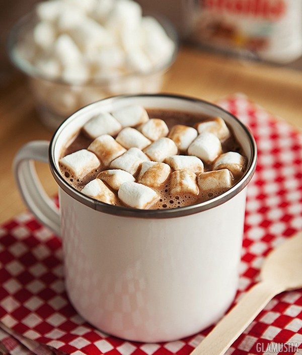 На среднем огне нагреваем молоко. Нагреваем, но не доводим до кипения.Горячее молоко снимаем с огня, добавляем в него Нутеллу.