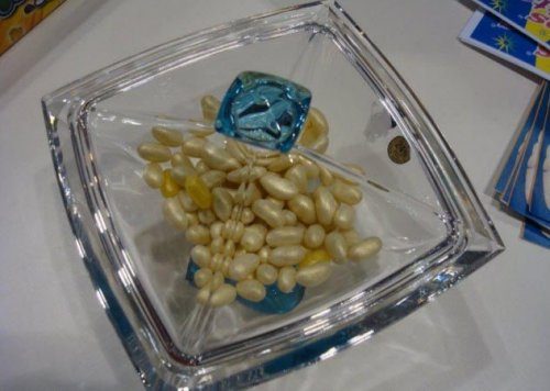 Оригинальные конфеты представляли собой драже, каждое из которых было покрыто 24-каратным сусальным золотом и помещено внутрь богато украшенной хрустальной банки. К счастью, конфеты стали более доступными для тех, кто не хочет выбрасывать 500 долларов на специальную упаковку. Можно приобрести небольшой пробный пакет, без всего этого золотого и хрустального безумия …всего за 16 $!