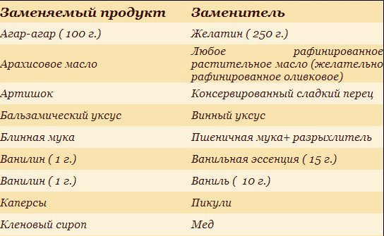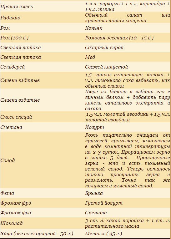 Чем можно заменить различные продукты?