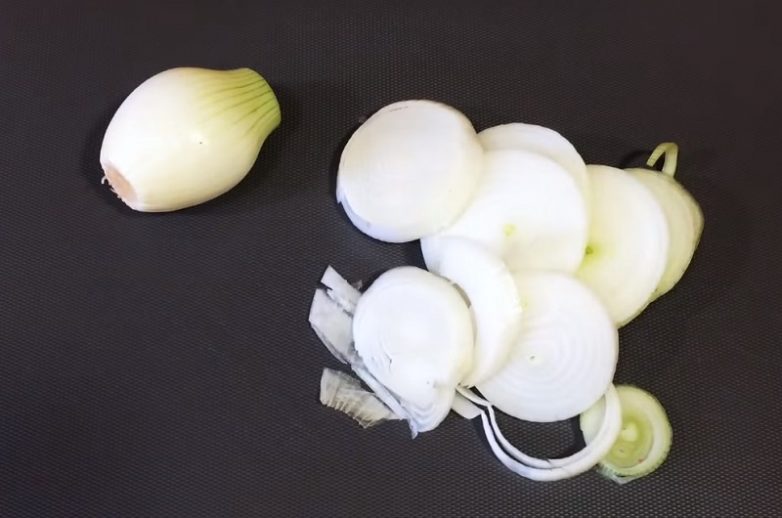 Лук и чеснок очисти и тщательно промой.Нарежь лук кольцами.