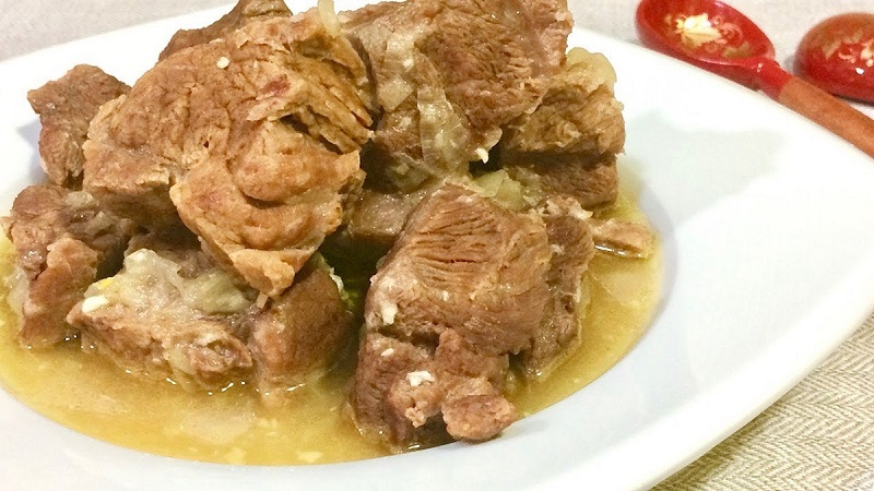 Очень, вкусно, часто такое мясо готовлю. Лучше в мультиварке- скороварке, 40 мин на тушении и до полного остывания. В казане тушится около 1,5 -2 ч на очень малом огне, в горшочках- не получится, это -говядина. Воду не наливаю, мясо, лук и масло дают очень много жидкости, бывает в конце даже выпаривают на сильном огне.