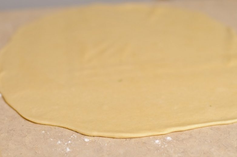 Закрой сверху начинку меньшей частью теста, запечатай края.