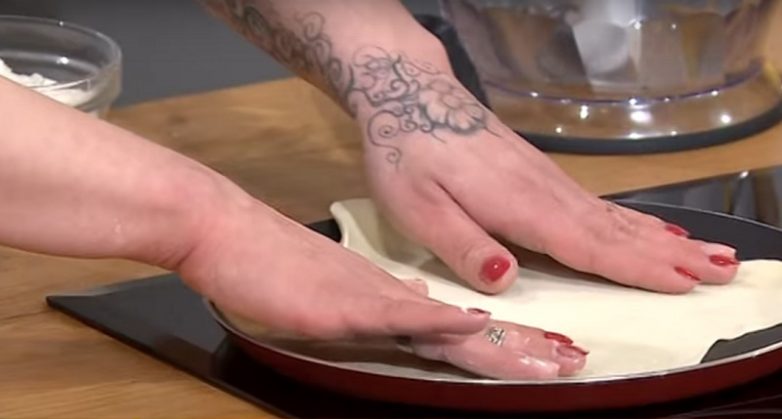 Раздели тесто на 8 равных кусочков и раскатай коржи.