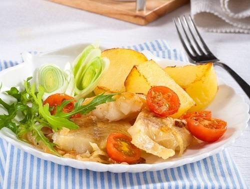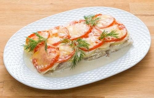 10. Рыба, запеченная с картофелем и помидорами