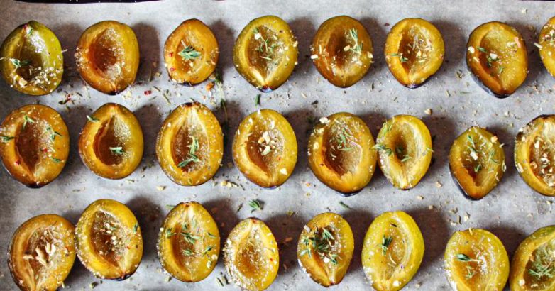Ароматные сливы с пряным вкусом готовы! Несомненно, они придутся вам по душе. Закуска готовиться очень быстро и легко – нет необходимости долго стоять у плиты. Духовка все сделает за вас.