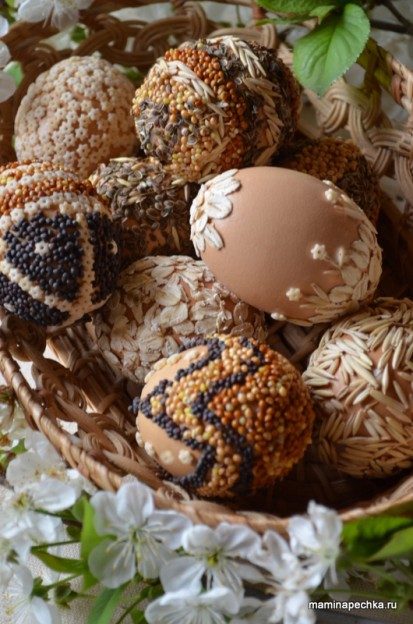 Идеи украшения пасхальных яиц зерном