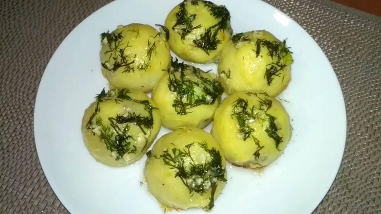 6.Наше блюдо готово.Сверху поливаем любым соусом( у меня растительное масло, чеснок и укроп)