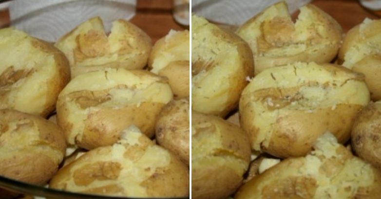 Теперь самое интересное! Каждую картофелину необходимо слегка придавить ложкой. Картофель должен треснуть, но ни в коем случае не развалиться.