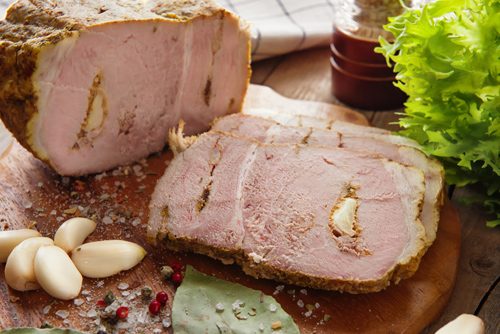 Пряная свинина с чесноком, запеченная в фольге