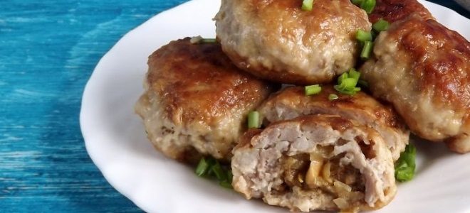 Любые блюда из мясного фарша в духовке готовятся на скорую руку, а котлеты с грибной начинкой получаются сытными и невероятно сочными. Для интересного вкуса, мясо лучше измельчить через крупное ситечко, а грибы обжарить вместе с луком. В классический рецепт зразов сыр не входит, но для разнообразия его можно добавить.
