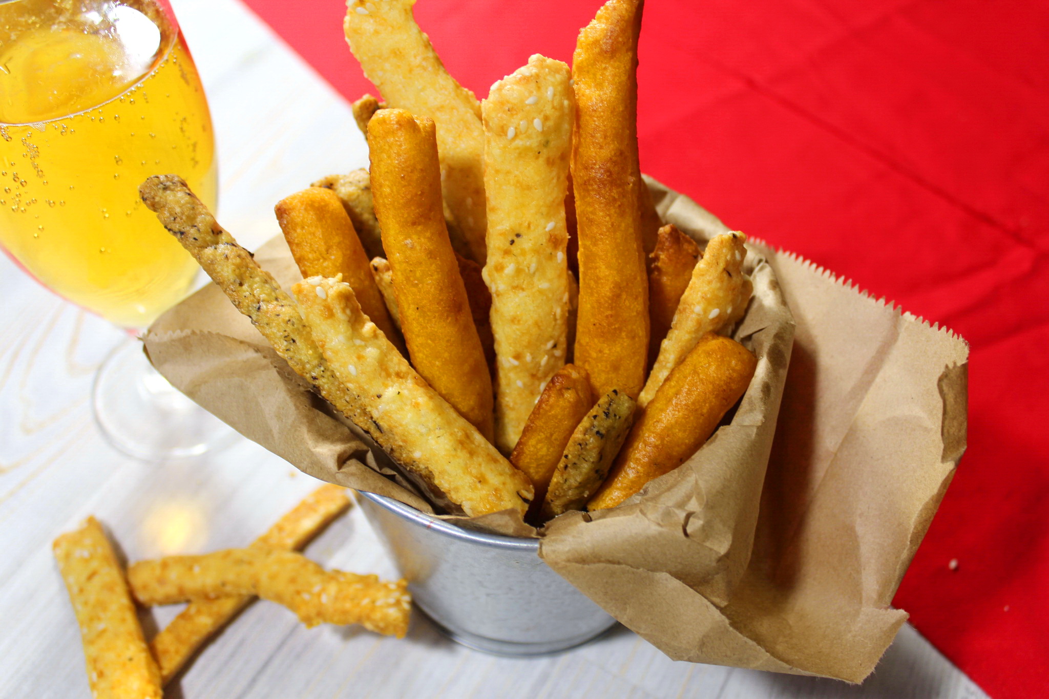 Сырные палочки – это очень простая и вкусная закуска. Мы любим готовить их с разными добавками, сегодня приготовим с базиликом, томатной пастой и кунжутом. Можно готовить с беконом, болгарским перцем, свежим укропом, а можно и без добавок вовсе, будет все равно очень вкусно!