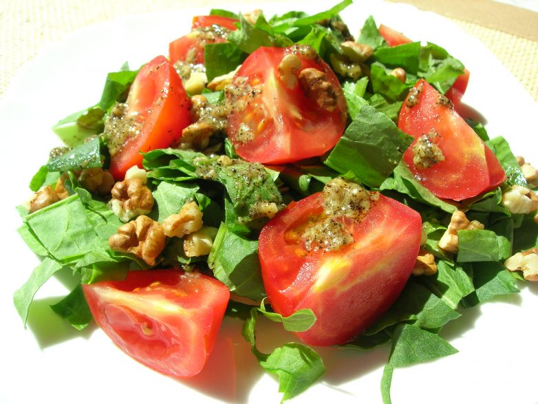 Яркий летний салат с легкой кислинкой и оригинальной заправкой