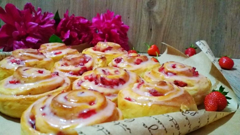 Булочки с клубникой и ароматной глазурью