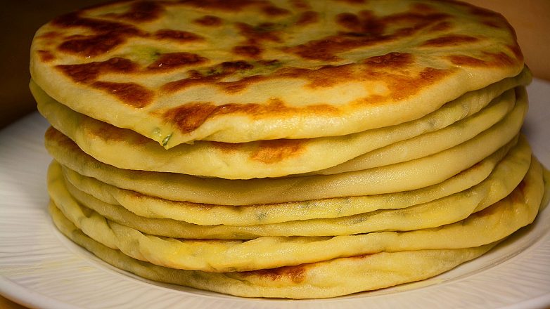 Это не лепёшки, а обыкновенное чуду тонкое с картошки традиционное блюдо северного Кавказа особенно В Республике Дагестан и диаметр сковородки не 18 см.как тут пишут а 24 см и толщина 5 мм., а 2 мм. общем чем больше тем лучше сковорода