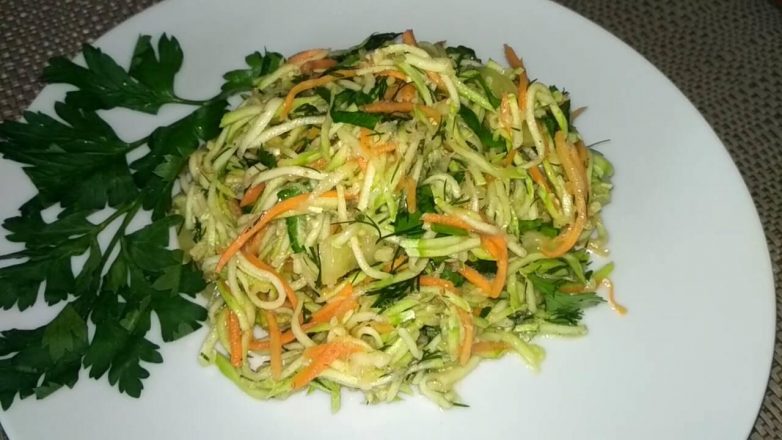 1.С тщательно вымытых кабачков срезаем кончики и натираем на терке для корейской моркови, кожицу можно не срезать.