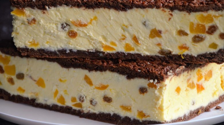 Самый вкусный рецепт сырника с изюмом и курагой, который хорошо сочетается с шоколадным тестом. Этот сырник можно выпекать и без шоколадного коржа. Желательно его печь только из домашнего жирного творога, тогда он получается по настоящему нежным, сочным и очень вкусным!