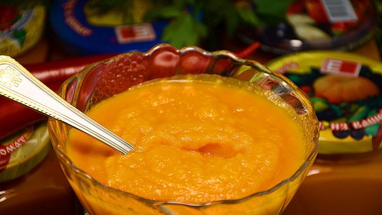 Переливаем получившееся пюре в кастрюлю и ставим на огонь. Икру нужно довести до кипения и проварить минуты 3. Доводите до кипения обязательно под крышкой, или при непрерывном помешивании, т.к. при закипании масса выстреливает кипящими брызгами во все стороны. Кипящую кабачковую икру разливаем по чистым, стерилизованным банкам и накрываем стерилизованными крышками. Закупориваем и переворачиваем на крышки, укутываем и оставляем до полного остывания.