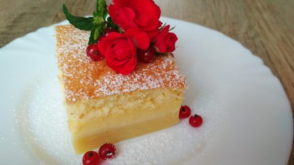 Всем большой привет! Сегодня готовлю умное пирожное. Умное потому, что во время выпечки тесто само делится на три разных слоя — суфле, крем и бисквит. Пирожное получается очень вкусным и нежным. Готовится очень просто, главное знать секреты приготовления, о которых я вам расскажу.