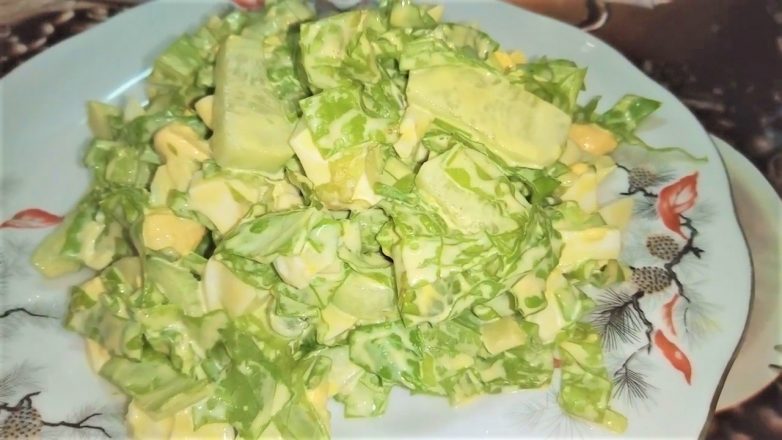Листья салата хорошо вымыть и нарезать не очень мелко, так же нарезали остальную зелень, огурец очистили от кожицы, нарезали кусочками, яйца порубили. Добавили соль и майонез, хорошо перемешали и салат готов! Приятного аппетита!!!