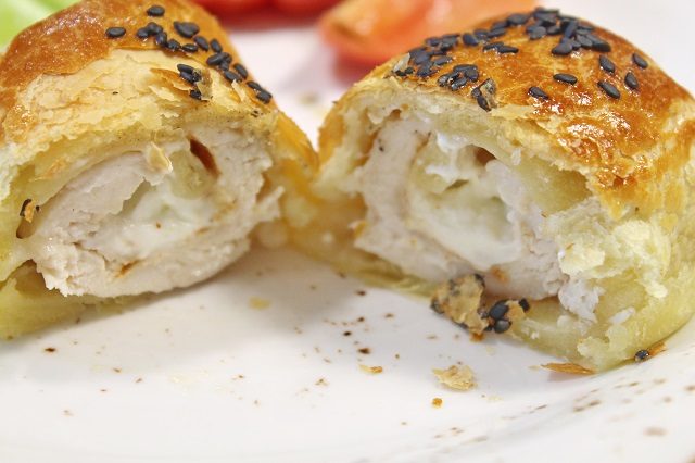 Предлагаю приготовить куриные рулетики с творожным сыром в слоеном тесте. Очень вкусное, красивое блюдо получается. Можно его разнообразить добавив перчик болгарский, зелень или помидор)