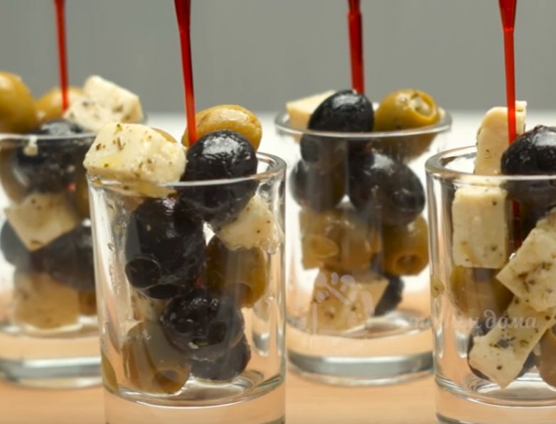 Такая закуска наверное самая быстрая из всех закусок которые можно приготовить. Закуска подается в маленьких стаканчиках и смотрится очень оригинально и красиво.