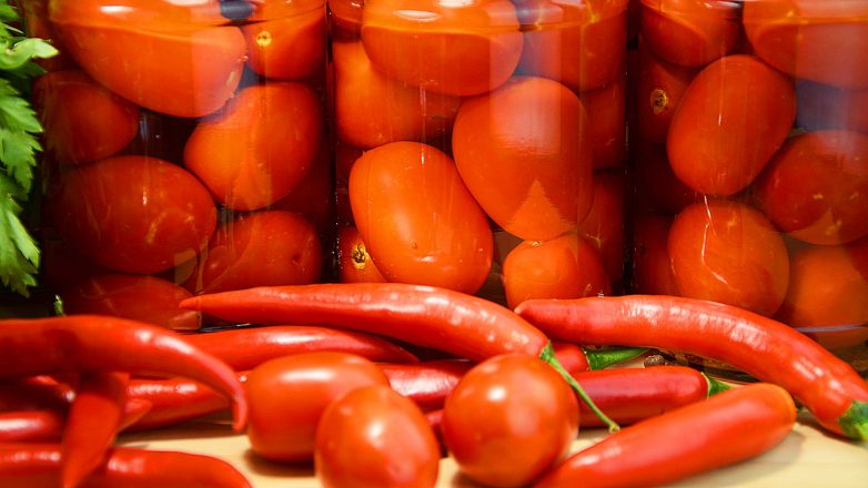 Укладываем помидоры в банки.