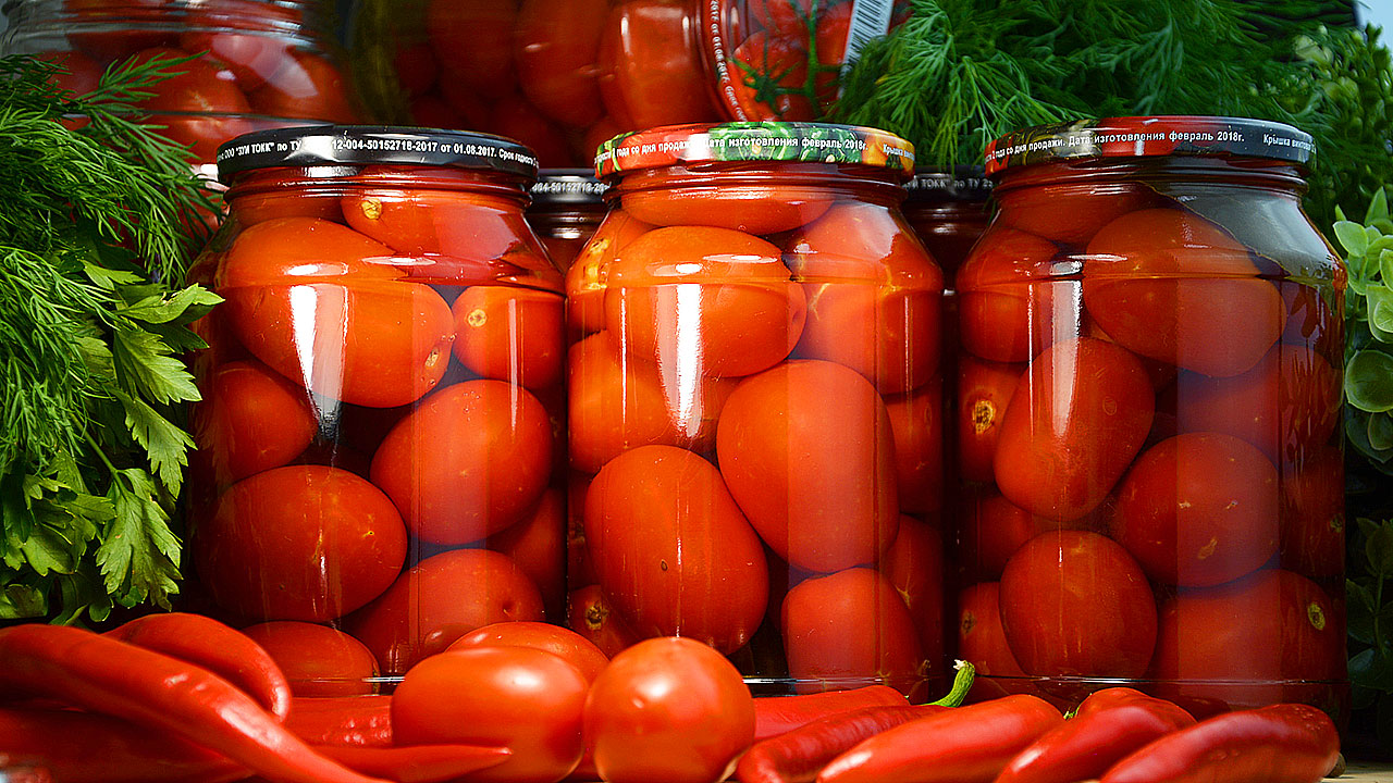 Чтобы помидоры не лопались, перед укладкой в банку нужно их проколоть в области плодоножки.