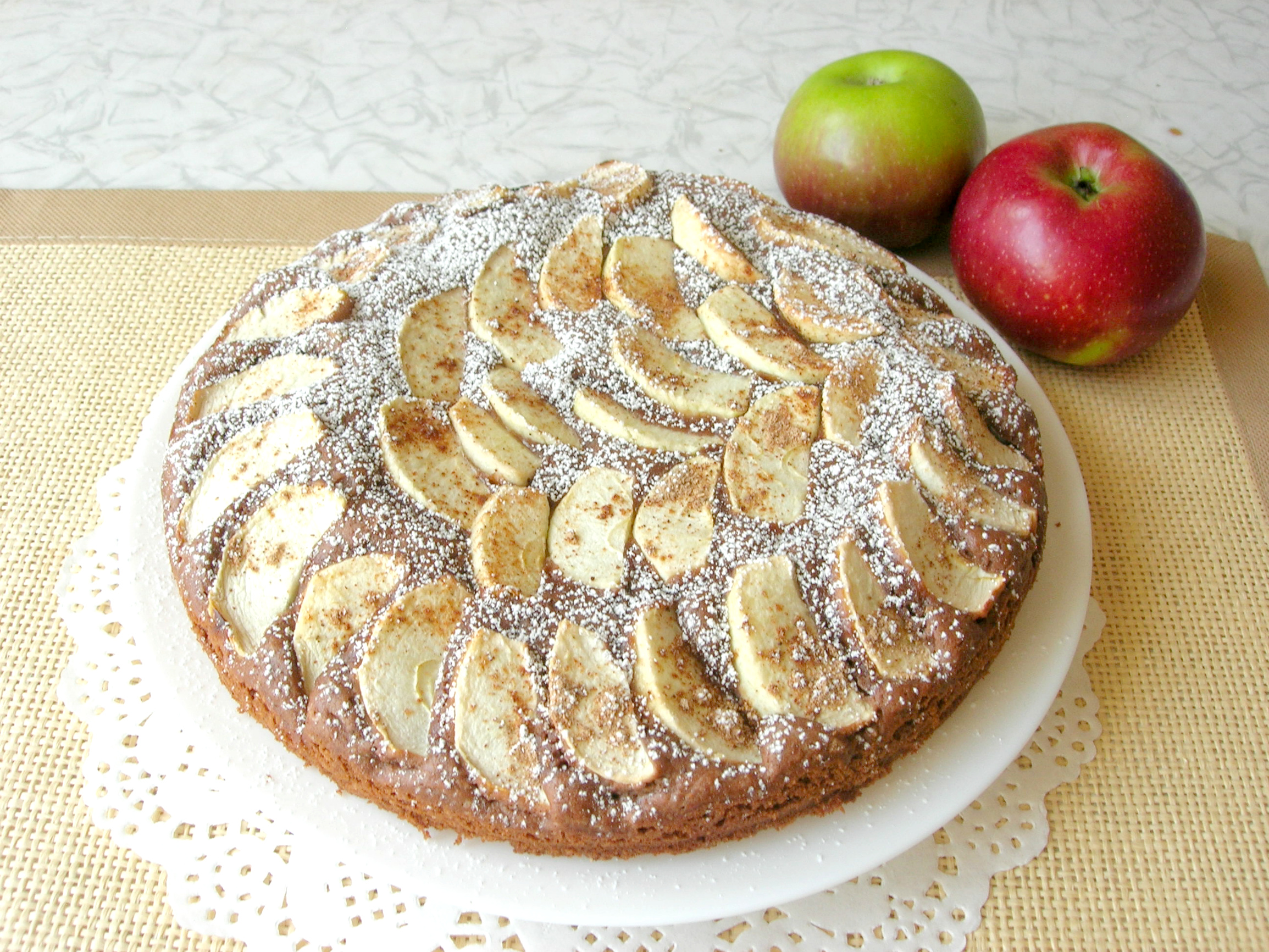 Наступила осень, в разгаре яблочный сезон. Я очень люблю выпечку с яблоками, одним из популярных рецептов яблочного пирога среди моих близких является этот рецепт. В этом пироге идеально сочетается шоколадный вкус с яблоками и корицей.