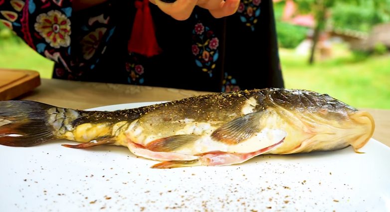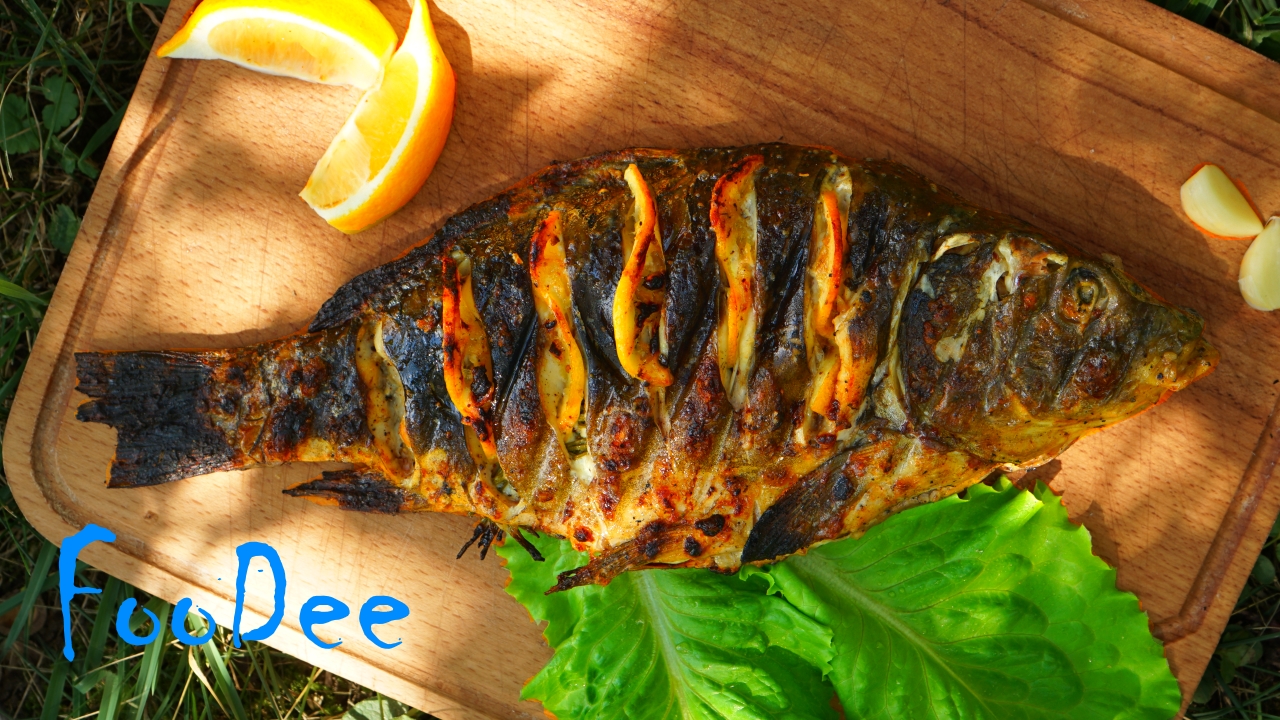 7. Жарить на мангале или выпекать в духовке при 220 градусах 20-30 минут в зависимости от размера карпа. Весь рецепт можете посмотреть в видео. Спасибо за внимание!