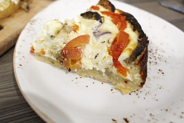 Киш с баклажаном и помидорами. Открытый пирог из песочного теста с баклажанами и помидорами.
