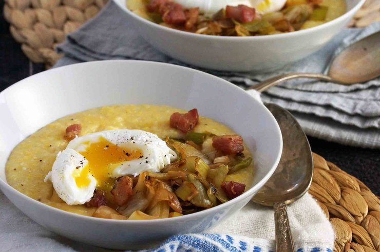 Например, поленте из кукурузной муки с оливковым маслом и горстью свежей петрушки. Само по себе такое блюдо может показаться пресным и сухим. С яйцом-пашот полента приобретает кремообразную текстуру и более насыщенный вкус. Завершит композицию финальный штрих — горсть тертого пармезана.