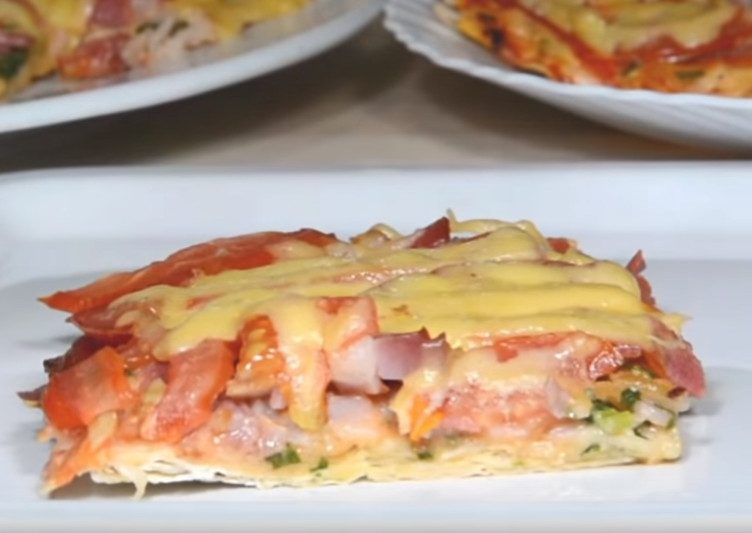Предлагаю приготовить быструю пиццу-пирог из лаваша. Если вам срочно необходимо вкусное угощение на стол, то этот рецепт, то что нужно. Очень вкусно, сытно и не хлопотно. Тоненькое тесто и сочная начинка не оставят равнодушными никого… А делается просто мгновенно…