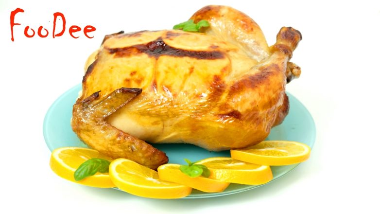 Праздничная курица с апельсинами в духовке