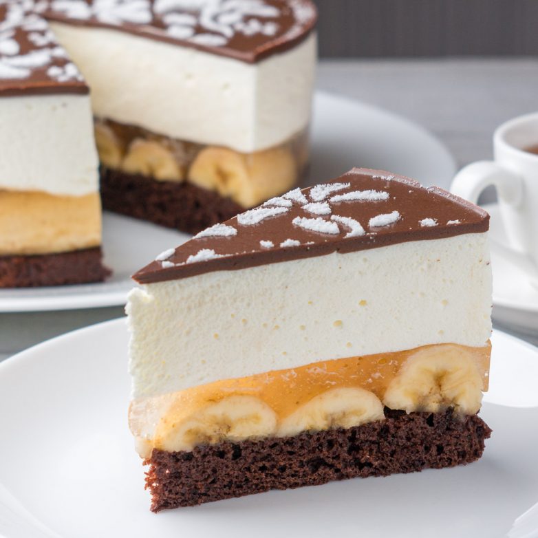 Торт получился очень вкусный. В нем отлично сочетаются нежное сливочное суфле, ароматные бананы и насыщенный шоколадный бисквит. Этот торт никогда не задерживается на столе!