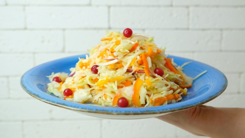 Такую капусту можно предложить даже в качестве новогоднего салата на праздничный стол с другими соленьями и маринованными овощами.