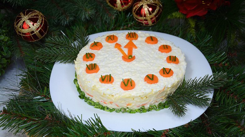 Новогодний салат «Часы». С таким салатом будет интереснее считать минуты до наступления Нового года!