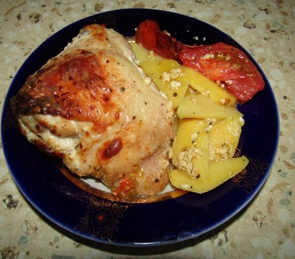 Нежное, вкусное и ароматное блюдо курица с картошкой в кефирном маринаде готово! Более подробный процесс приготовления смотрите на видео. Приятного аппетита!