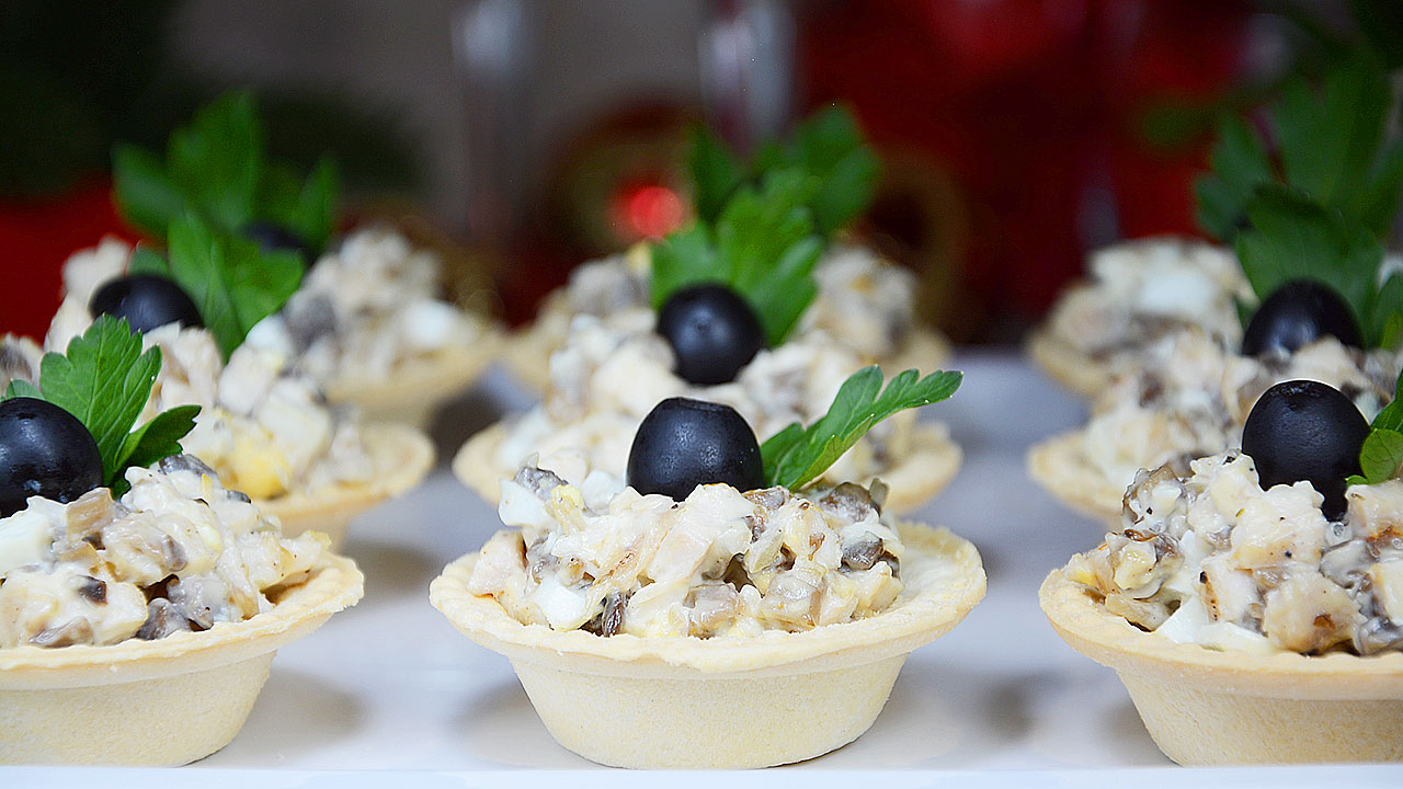 Тарталетки с курицей и грибами на праздничный стол